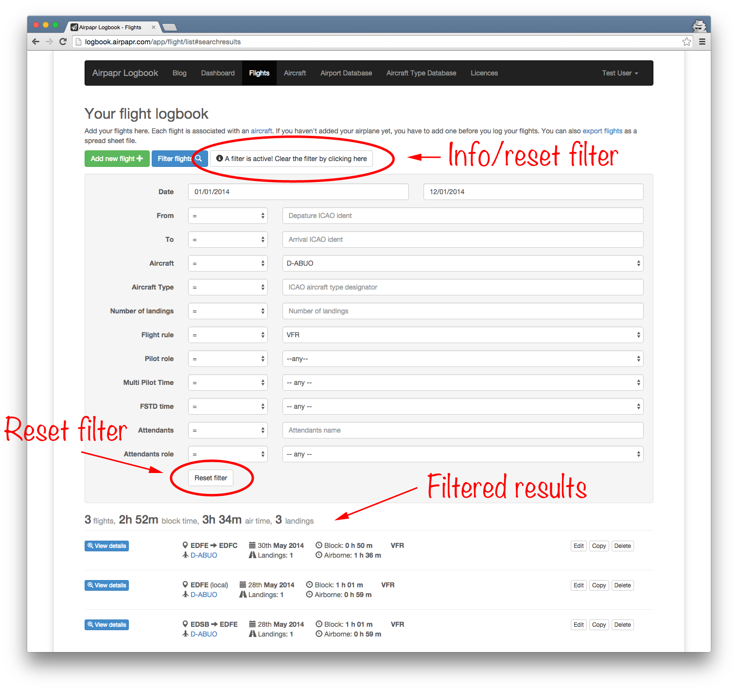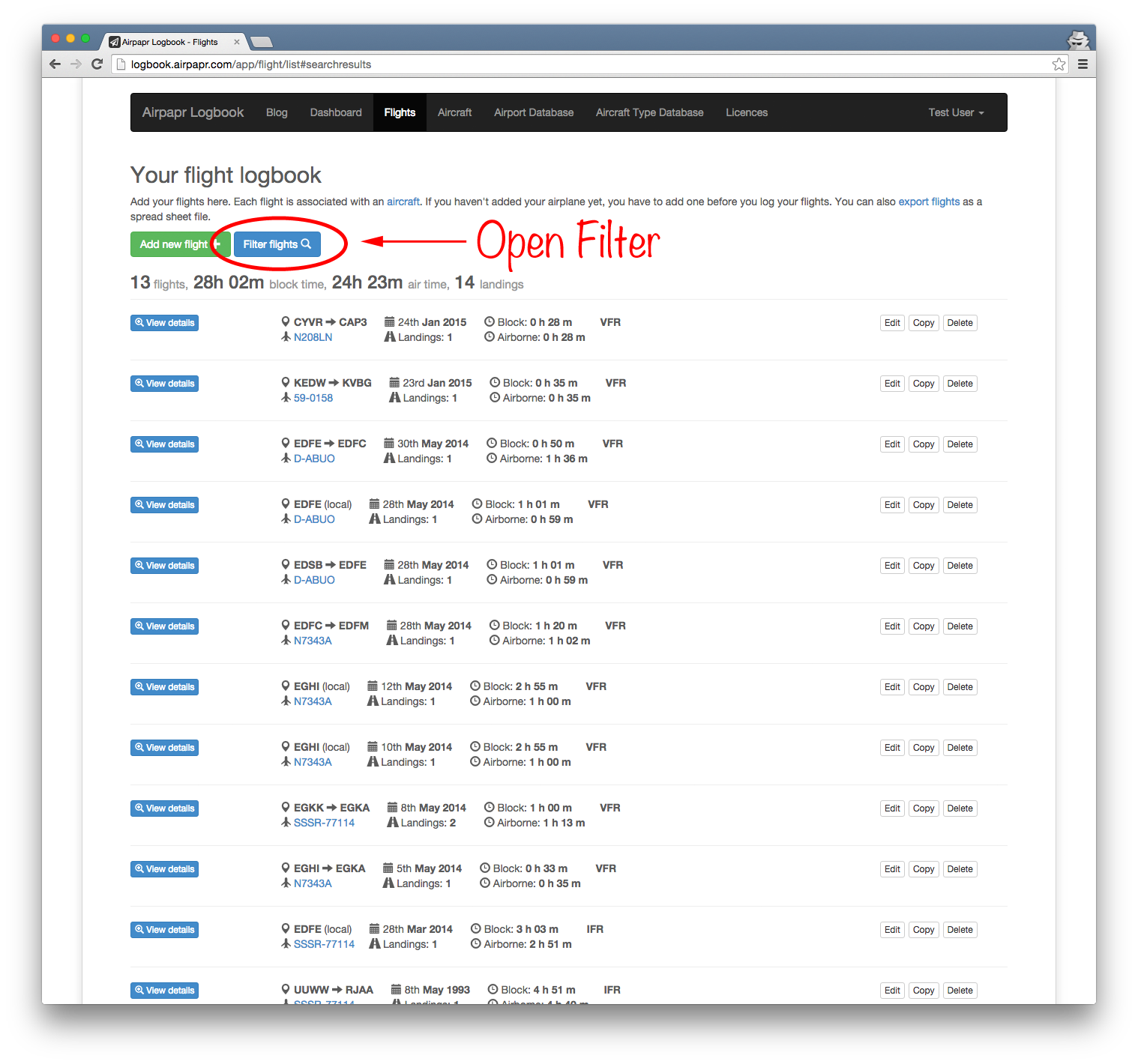 We are happy to announce a mayor improvement we added to Airpapr Logbook. Until now, it was only possible to filter your flight list by date and the flight rule. But often you need more detailed analysis of your flight history. How often have I flown one type? How many NVFR block time have I accumulated this year? From now on all this is possible as you can now filter flights by each parameter you have entered with a flight. You can also combine filters to get just the results you need.